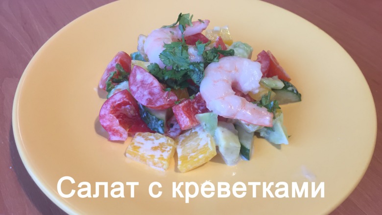 Салат с тигровыми креветками, авокадо и цитрусовой заправкой